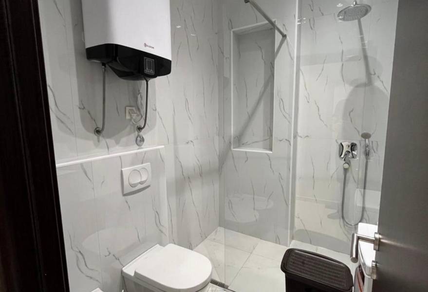 Kupatilo: od bijelog mermera opremljeno modernom staklenom tuš kabinom, bide, SOS dugme